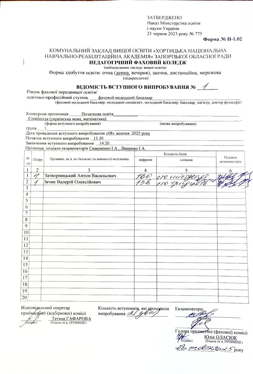 !!! У разі невідповідності повідомити про це відбіркову комісію за телефоном 0962680397 !!!