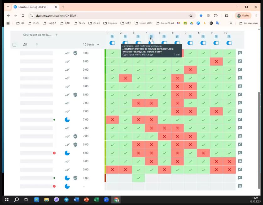 тестування на освітній платформі Classtime. Проаналізувавши результати