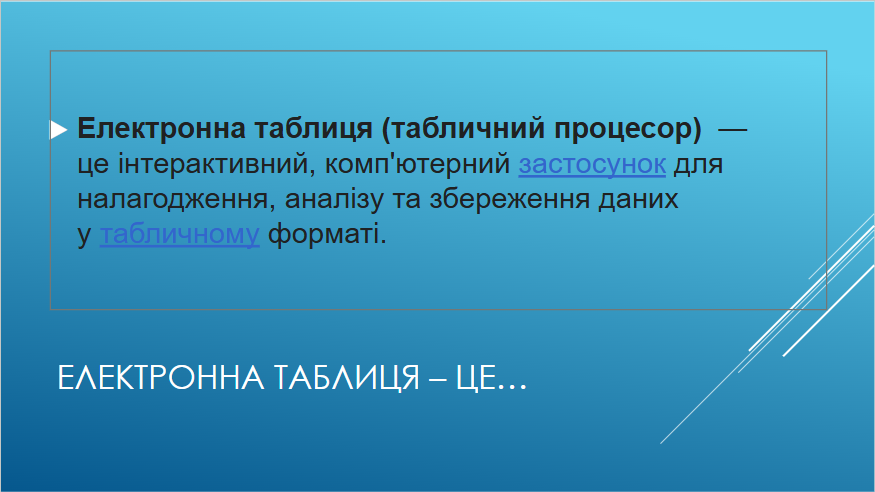 Ф. нагадав колегам теоретичні поняття, пов’язані з електронними таблицями