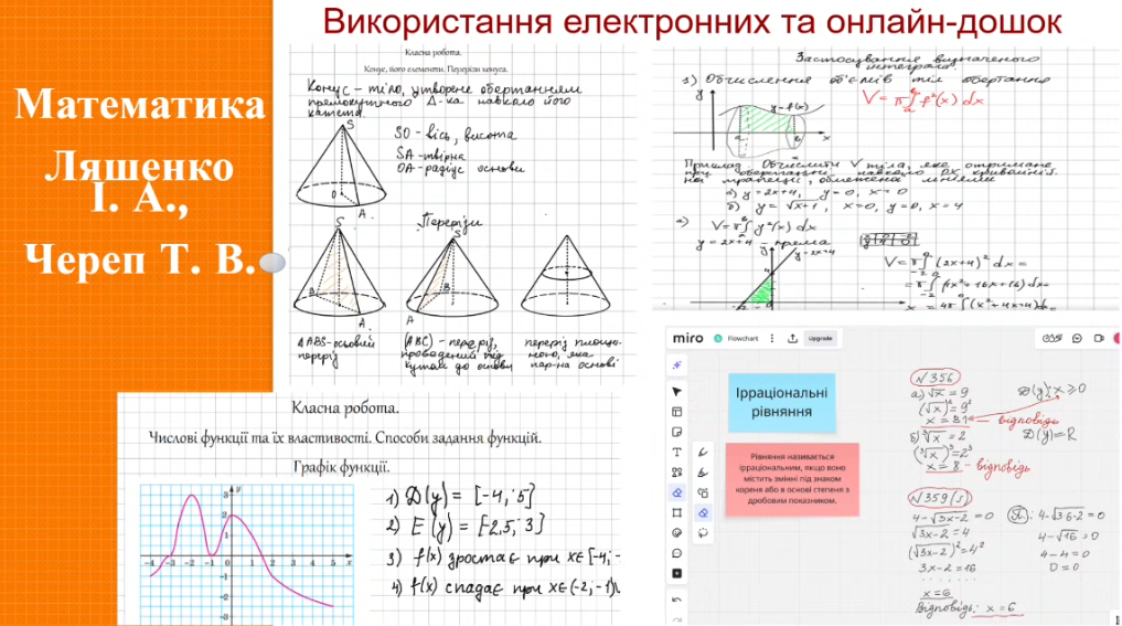 Голова циклової комісії освітньої галузі «Мистецтво», «Технології» Єфімова Т.Л. представила узагальнений практичний досвід роботи викладачів зі створення освітніх продуктів на основі цифрових платформ. Викладач образотворчого мистецтва Данильчук В.М. продемонстрував свій власний досвід та переконав у ефективності використання сучасних засобів навчання. Голова циклової комісії викладачів математичних дисциплін та інформатики Ляшенко І.А. зупинилася на питанні модернізації колегами процесу викладання з допомогою цифрових інструментів.